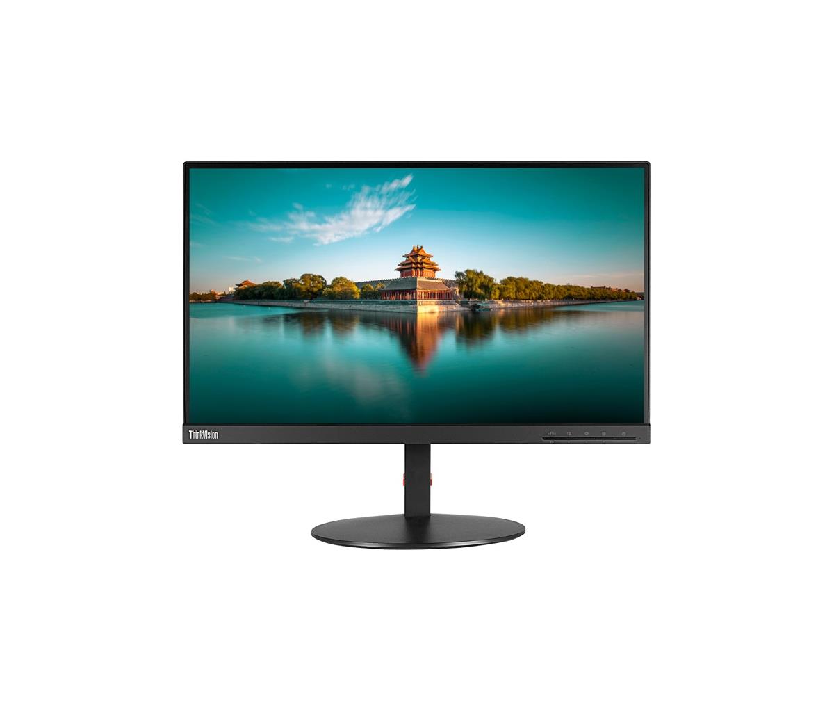 The ThinkVision T23i-10 monitor has a black and concise appearance with a full-function ergonomic stand. It offers a clear display of 1920x1080 resolution with a near edgeless IPS-type screen, providing vivid images from a wide viewing angle.