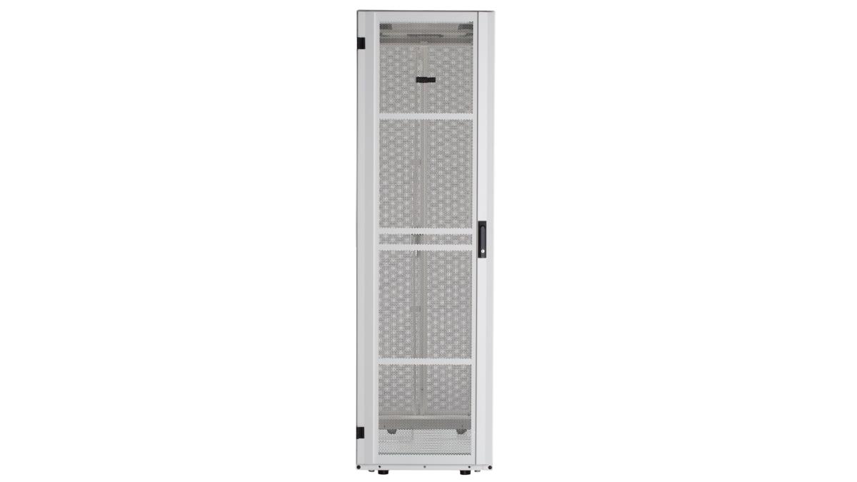 800mm x 48RU x 1200mm, White, includes Single Hinged Perforated Front Door, Split Perforated Rear Door, Left and Right Side Panels, Cage Nut Equipment Rails, 1 Set PDU Mounting Bracket, Casters