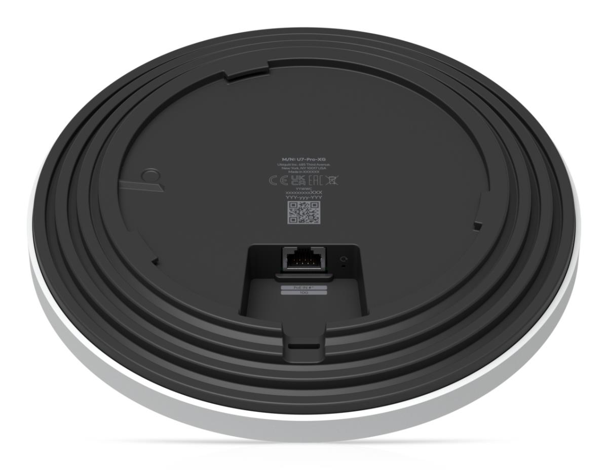 Ceiling-mounted 6-stream WiFi 7 AP with 10/5/2.5/1 GbE support.
