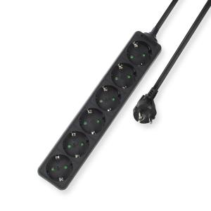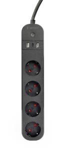 Power Strip With Illuminated Switch 4 Sockets 2m Black