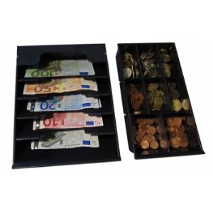 Adjustable bill widths, Adjustable coin widths, 4 Bill x 8 Coin, fits Vasario 1616 and 1618 size cash drawers.