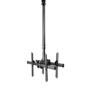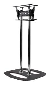 A modular based system which allows for a custom built flat screen display floor stand, the BT4102 floor base is designed to mount 2 screens back-to-back, use with B-Tech's Ø60mm poles and collar compatible mounts. After picking a base, choose the height of the Ø60mm poles and screen interface kits with accessory collars depending on the type of installation. The base can be used freestanding or bolted to the floor. Single screen installations are also possible.
