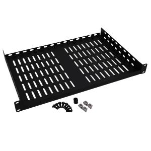 The 4POSTRAILKITWM wall-mount rack shelf kit provides extra support for heavy UPS systems, PDUs or other rack-mount components that weigh 150 lbs (68 kgs) or less. It includes two adjustable mounting rails that attach to the mounting rails of your EIA-standard 19-inch wall-mount enclosure. Constructed using cold-rolled steel with a durable powder-coated finish, this heavy-duty rack rail kit comes with mounting hardware compatible with square-hole racks.