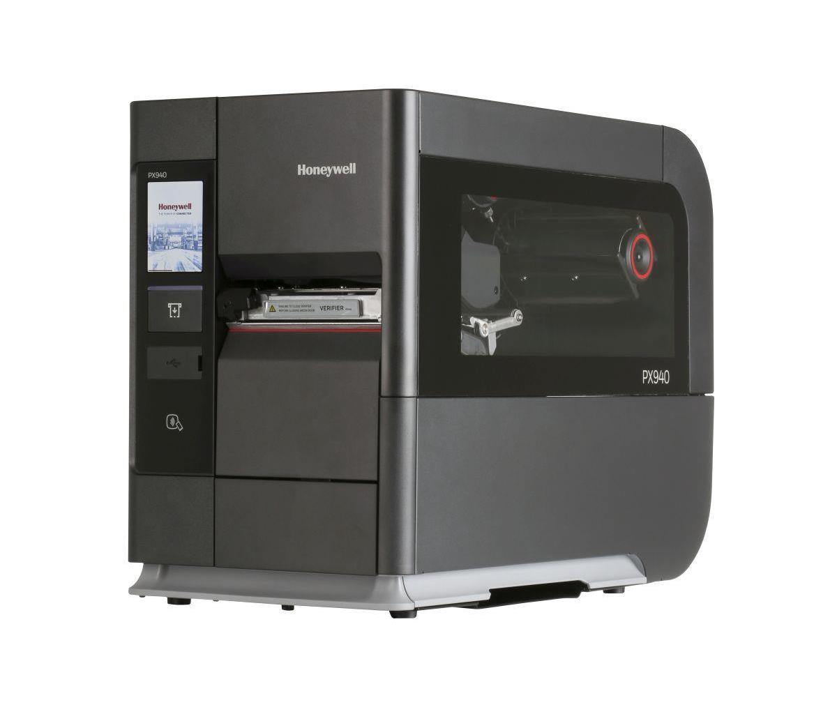 The PX940 family of high-performance industrial printers with integrated label verification technology provides error-free printing. Developed for companies that are subjected to fines levied for non-compliance to regulatory standards, and returned shipments due to unreadable barcodes, the PX940 series prints barcodes that are defect-free and 100% accurate every time. The fully integrated verifier allows for quick setting up even when printing and verifying different labels. With pass/fail and ANSI grades from 1 to 4, bad labels that do not meet an established threshold are voided and a new label is reprinted. The PX940 printer has print registration of up to +/- 0.2 mm (0.0079 in). The trend toward miniaturization requires printing on smaller and smaller labels. The PX940 will print accurately on small labels, edge to edge with little error tolerance. The PX940 printers are suited for transportation and logistics, pharmaceuticals and healthcare, shipping and distribution centers, industrial manufacturing, automotive parts suppliers, and applications that are regulated and require high precision and error-free printing. The PX940 printer is available in two versions: one with the integrated verifier, and an option without the integrated verifier. Both versions are available with standard features such as Bluetooth®: and smart printing capability, in which users can configure and fine-tune settings without the need for a host computer. With a Honeywell firmware platform that supports multiple print languages, the PX940 printer is an easy replacement for competitive printers. A rugged all-metal print mechanism, and easy printhead and tool-free platen roller replacement, help minimize downtime and maintenance needs. The PX940 printer can support a wide range of media –: including ink-in and ink-out ribbons with one-inch core size –: enabling maximum time between media resupply. Fast time-to-label and print speeds of up to 350 mm/s (14 ips) ensure that the PX940 printer can scale with the changing needs of dynamic operations.