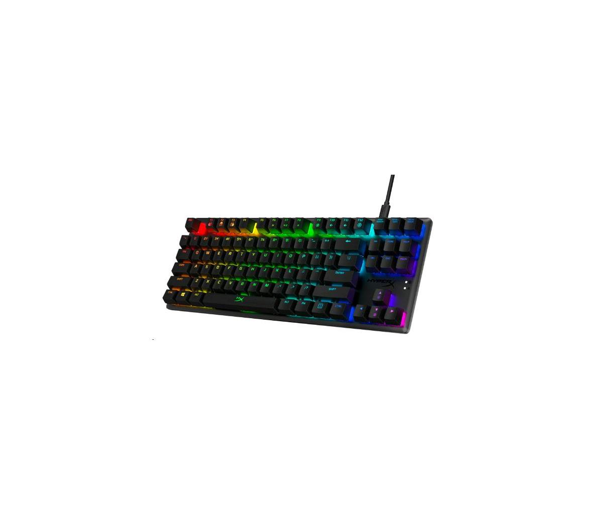 Tenkeyless keyboard featuring custom HyperX mechanical switches.