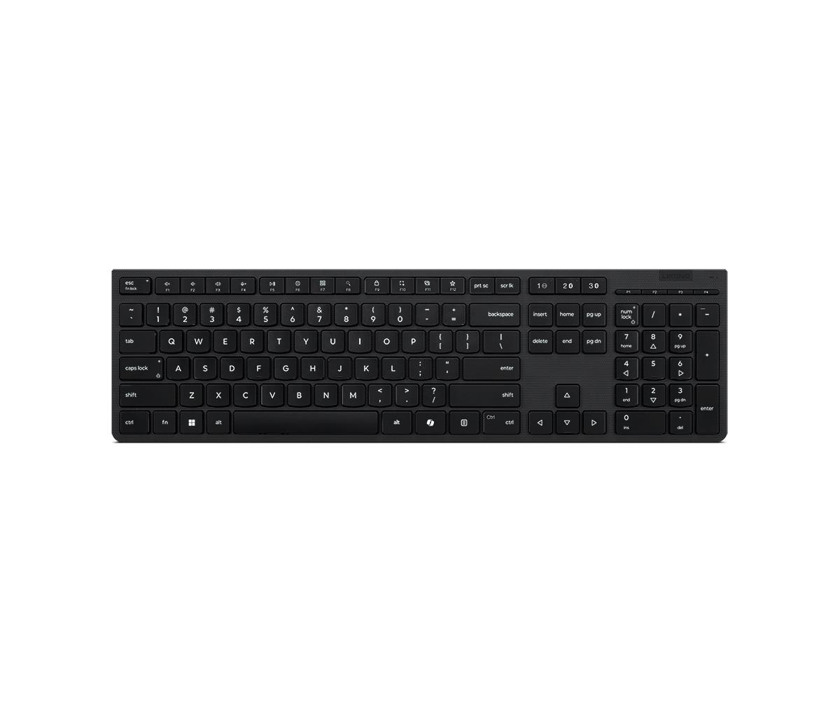 The Lenovo Professional Wireless Rechargeable Keyboard, its full-size keyboard sports scissor switches that create an elevated typing experience and improves your working efficiency with specialized Microsoft Copilot Key. Plus, its covers are made from eco-friendly 65% recycled material that protects the environment.