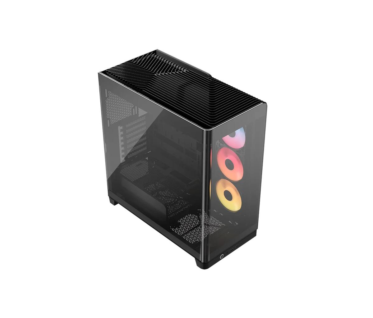 Clean lines cascade like a waterfall over the chassis's exterior, offering generous openings for airflow and a unique look that sets it apart.