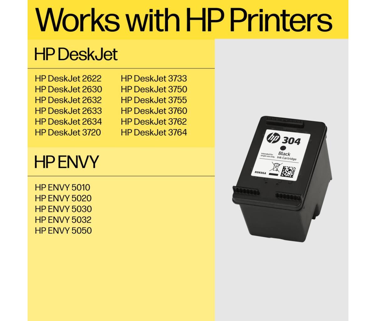 | Compatibiliteit | HP 304 inktcartridges werken met: HP DeskJet 2620, 2622, 2630, 2632, 2633, 2634, 3720, 3733, 3750, 3760, 3762, 3764 HP Envy 5020, 5030, 5032 |