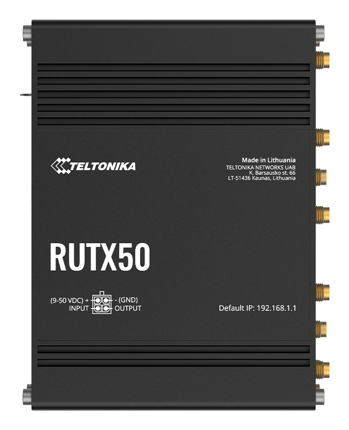 RUTX50 is your future-proof, multi-network industrial router, offering 5G mobile communication for high-speed and data-heavy applications. 5G dual SIM cellular communication combined with 5 Gigabit Ethernet ports and dual-band Wi-Fi enables reliable ultra-low latency data transfer.