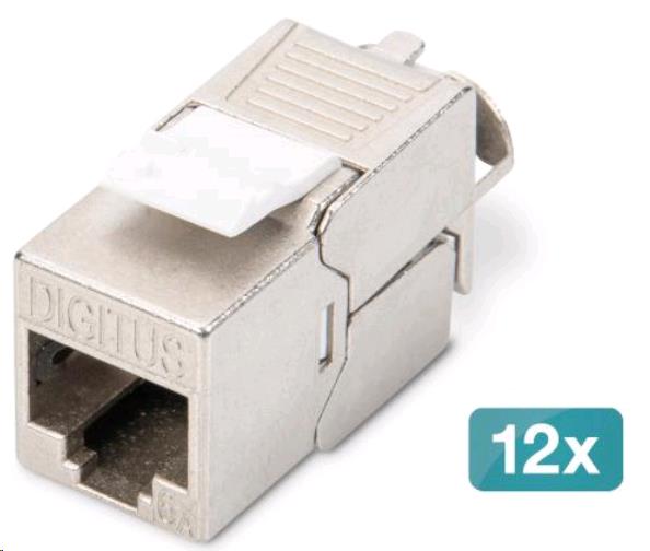 The shielded CAT 6A Keystone module set DN-93615 from DIGITUS© impresses with future-oriented standards and high-end quality for your network. The compact design allows a series installation in 483 mm (19") 1U panels. The tool-free installation is carried out via LSA strips, color-coded according to EIA/TIA 568 A&B. Thanks to its compact design, the module also fits into design-compatible modular junction boxes.