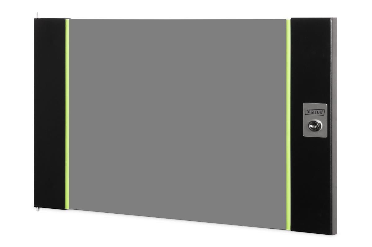 Replacement door for DIGITUS network cabinets for wall mounting of the Unique series. Safety glass with steel frame. Supplied with lock and key (type 9473).