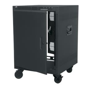 Specify a PTRK series rack when rugged portability is essential. Smooth rolling 4” casters, advanced cable management and secure doors make this rack ideal for serving a variety of applications.