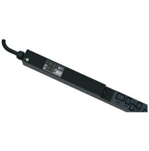 This Panduit G5 Monitored Input PDU features (20) C13 and (4) C19 outlets. It is a 32 amp, 230 V, single phase PDU with an IEC 60309 2P+E 6h 32A (IP44) input plug and a 10 foot (3m) power cord.